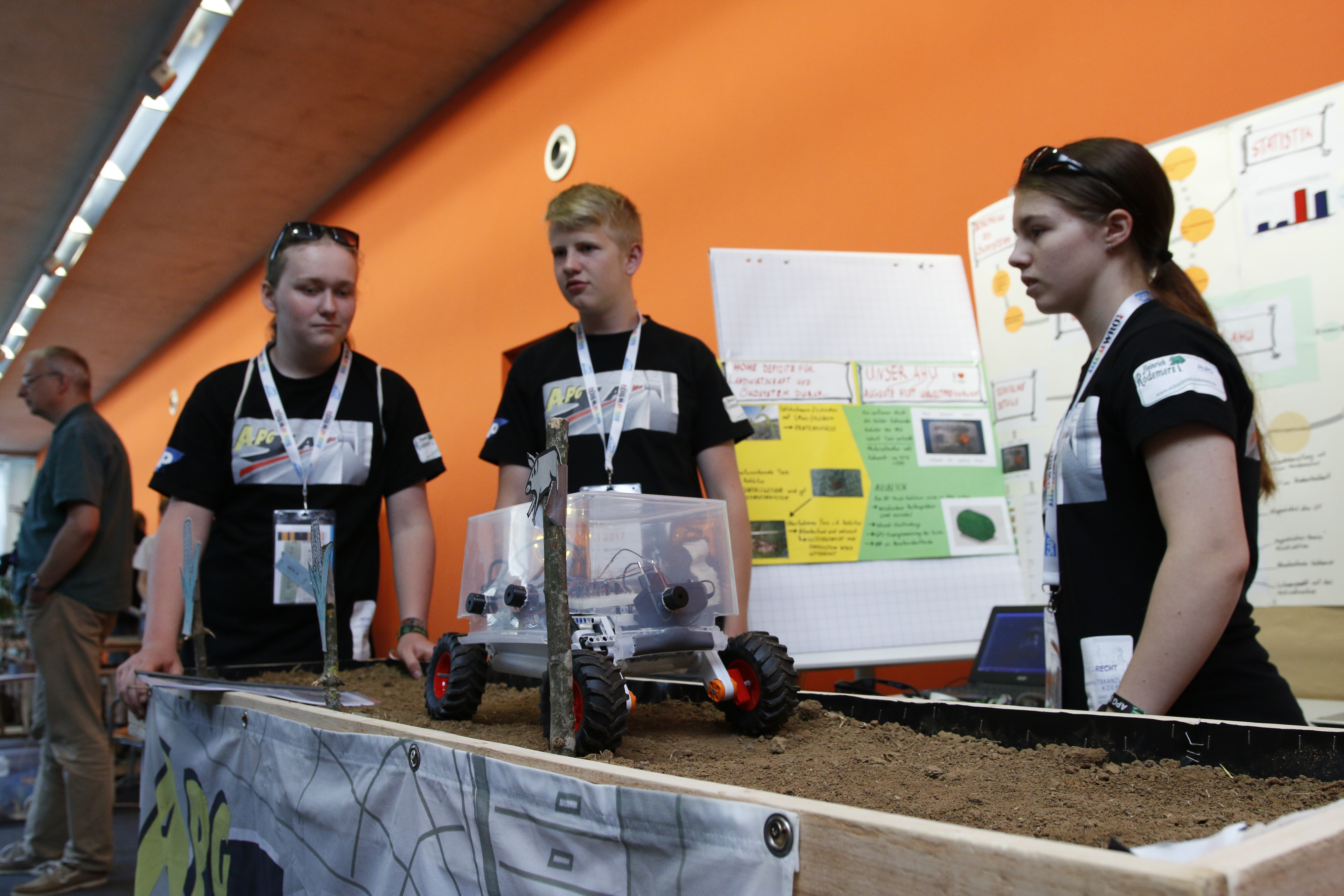 Das Auto vollbepackt mit dem Deko-Material und unserm kleinen Roboter, ging’s dann mit gemischten Gefühlen, - wir wussten nicht was uns erwartet und wie die anderen Teams einzuschätzen waren -, zum Regionalwettbewerb nach Walldorf, den wir dann auch gewonnen hatten. „Jetzt haben wir die Tür nach Costa Rica geöffnet, wir müssen nur noch durchgehen“ war unser Motto für das Deutschlandfinale. Wir machten uns also gleich an die Arbeit, das Feedback, welches wir von der Jury in Walldorf bekommen haben, in unserem Projekt umzusetzen und so unseren Roboter wesentlich zu verbessern.