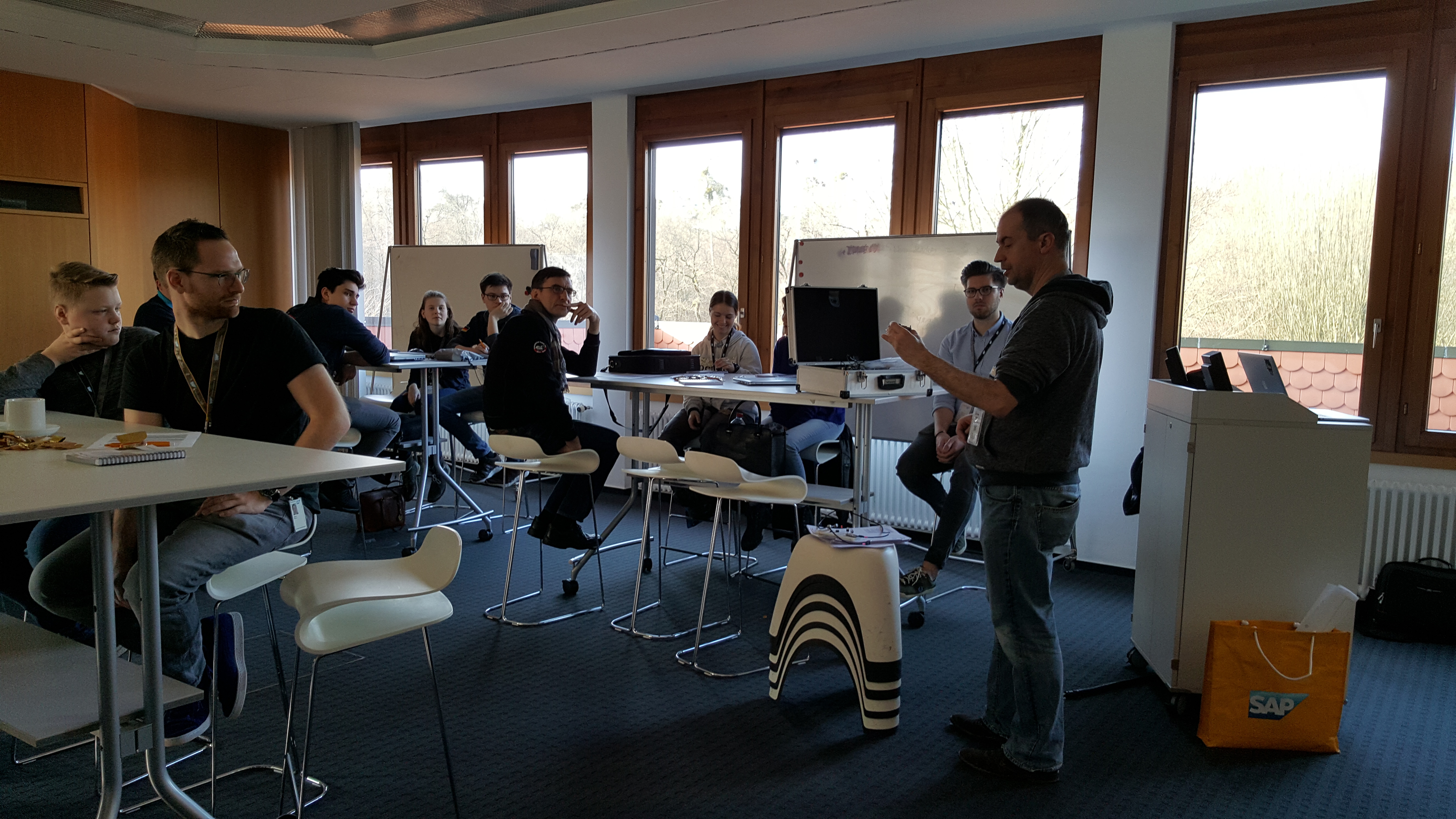 Am Freitag, den 23. Februar, war es soweit: Die teilnehmenden Teams des Kooperationsprojekts trafen sich mit uns im internationalen Schulungszentrum von SAP in Walldorf. Beginnend mit einer kurzen Vorstellungsrunde und einer Einführung in die Arduino und Raspberrry Pi Technologien lernten die Teams ihre zugeteilten Mentoren kennen. Gemeinsam programmierten sie die Platinen und tauschten sich über erste Ideen zum Open Category Projekt aus.