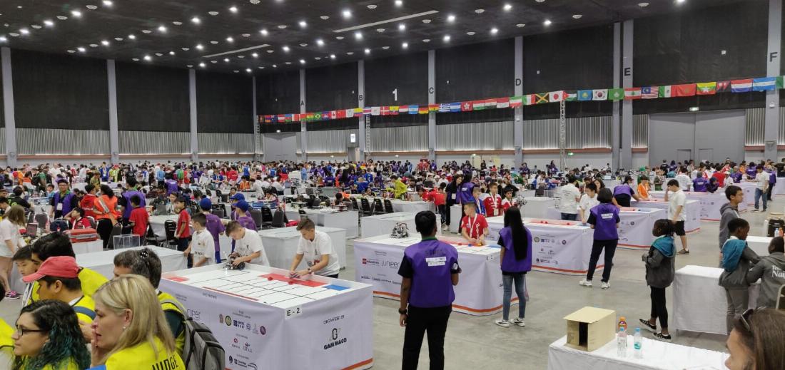 Neben den ersten Eindrücke in der Location stand heute ebenfalls das Delegations-Foto unserer deutschen Teams & Mitreisenden auf dem Programm, denn bei der WRO darf nicht nur ein Gewinnerteam, sondern in den verschiedenen Altersklassen und Wettbewerbskategorien ein oder mehrere Teams zu einem Weltfinale. Das macht die Reise zu einem besonderen Gemeinschaftserlebnis, welches wir traditionell mit gleicher Kleidung (unseren mittlerweile bekannten Sweatshirtjacken) symbolisieren.