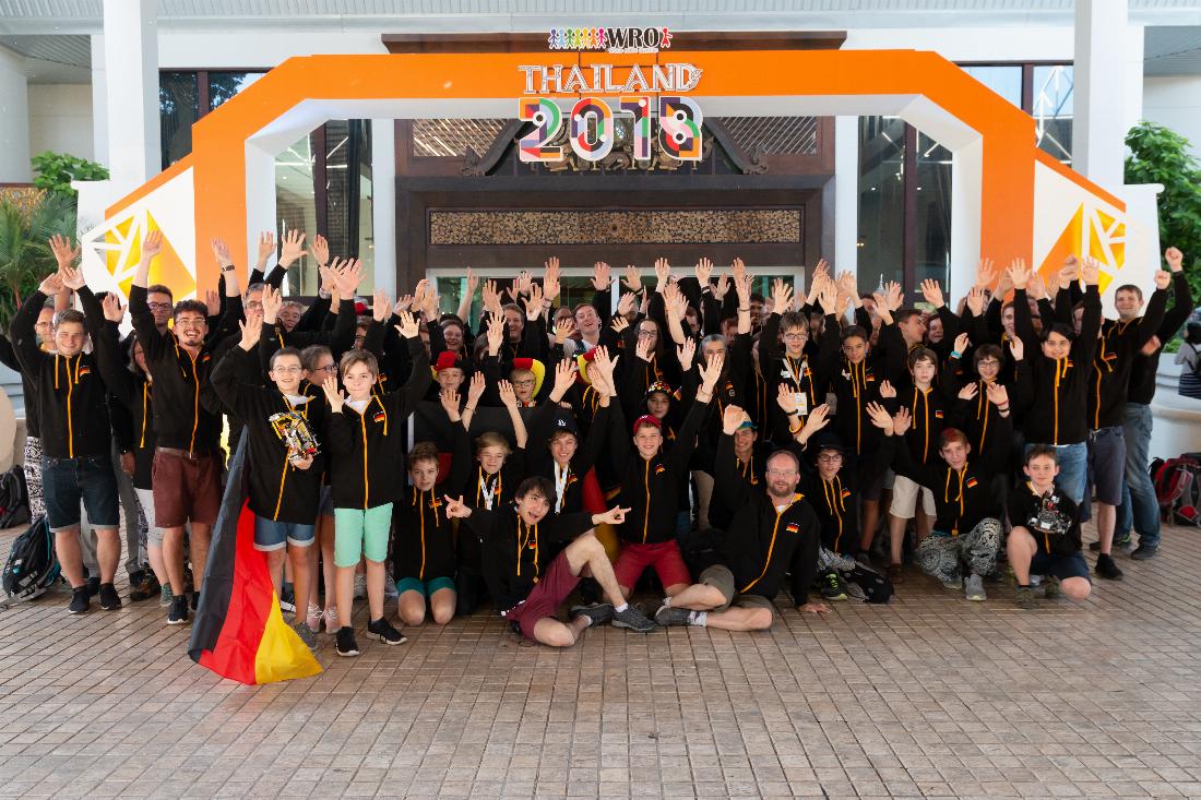 15 deutsche Teams reisten in der vergangenen Woche nach Chiang Mai zum Weltfinale der World Robot Olympiad. Gemeinsam mit über 100 Deutschen (Eltern, Bekannte, Wettbewerbspartner, Vereinsmitglieder von TECHNIK BEGEISTERT e.V.) wurde unsere deutsche Delegation unterstützt und unsere WRO-Familie vertreten.