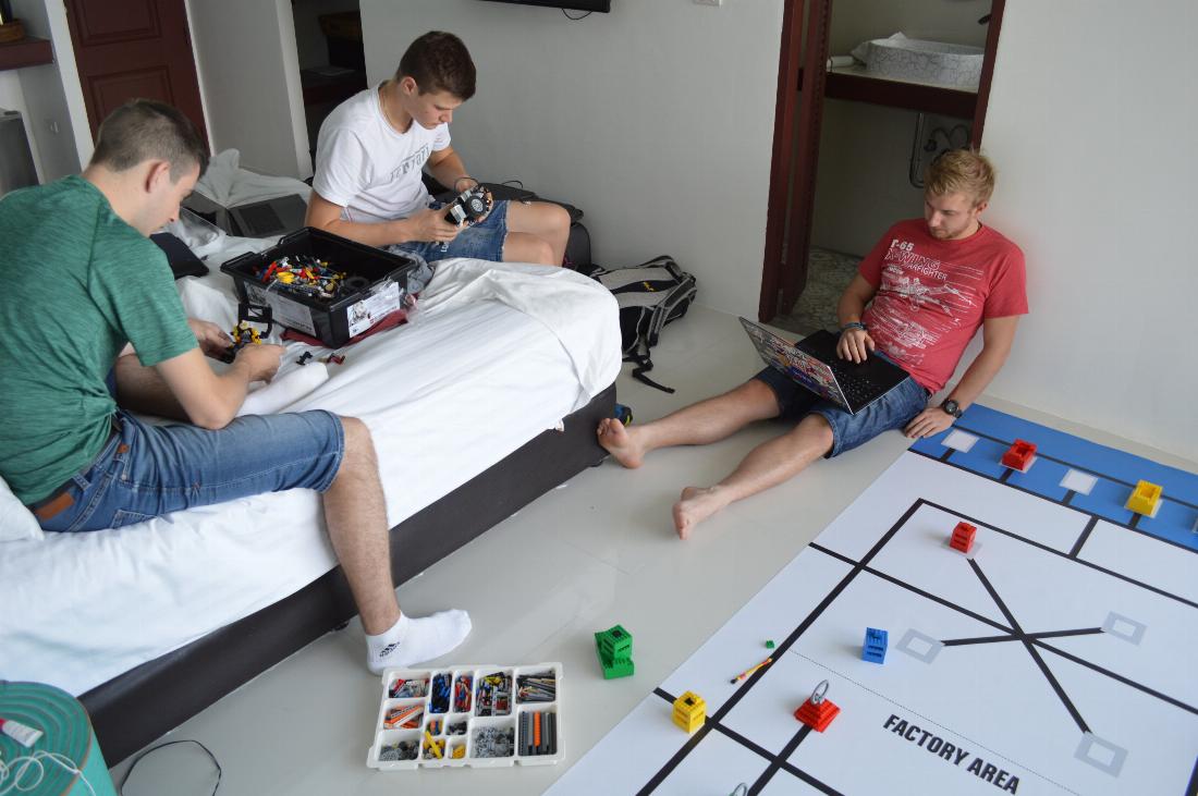 Nach einem kurzen Inlandsflug landeten wir im Strandparadies Phuket. Dauerhafte Temperaturen zwischen 25 und 35 Grad und das Flair der Insel sorgten für einen radikalen Wechsel und Unterschied zur Hauptstadt. Das direkt an der Küste liegende Hotel hatte einen traumhaften Meerblick. Doch vom Meer sahen wir leider nicht all zu viel. Da der Boden im Hotel optimale Wettbewerbsbedingun-gen erfüllte, wurde dort kräftig umgebaut, programmiert und fleißig geübt. Somit konnte der Robo-ter noch etwas optimiert und eine noch bessere Zeit herausgekitzelt werden. Abends jedoch fand sich Zeit, um die Halbinsel etwas zu erkunden. Ob im Nachbardorf oder auf einer der Partymeilen, in Phuket ist immer etwas los!