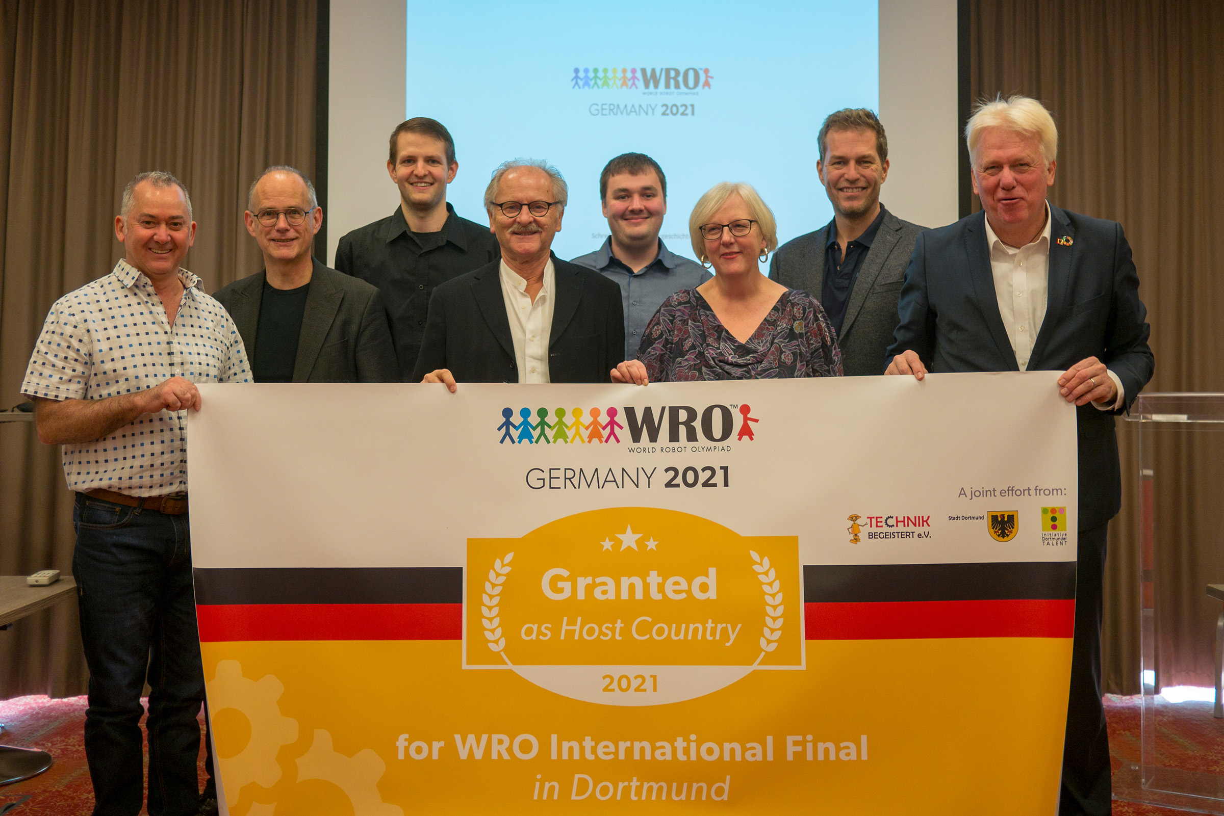 Am Montag, den 11.11.2019 präsentierten Vertreter des Vereins gemeinsam mit Ullrich Sierau, Oberbürgermeister der Stadt Dortmund, und Partnern das Konzept zur Austragung des internationalen WRO-Finales vor dem internationalen Expertengremium der World Robot Olympiad Association. Die Präsentation fand im Rahmen des diesjährigen WRO-Finales im ungarischen Győr statt.
