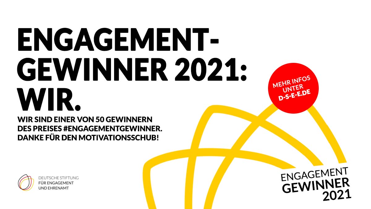Im Rahmen einer digitalen Vernetzungsveranstaltung am 18. Dezember nahmen die Vorstandsmitglieder Markus Fleige und Lukas Plümper den Preis stellvertretend für die vielen Engagierten im Verein entgegen. „Wir freuen uns sehr über die tolle Auszeichnung für unser ganzes Netzwerk an Mitgliedern, Partnerinnen und Partnern und Ehrenamtlichen. Mit dem Preisgeld werden wir unsere Akquise von Ehrenamtlichen weiter ausbauen und noch mehr tun, um unsere Aktivitäten öffentlich bekannter zu machen.“, erläutert Markus Fleige, Vorsitzender des Vereins.