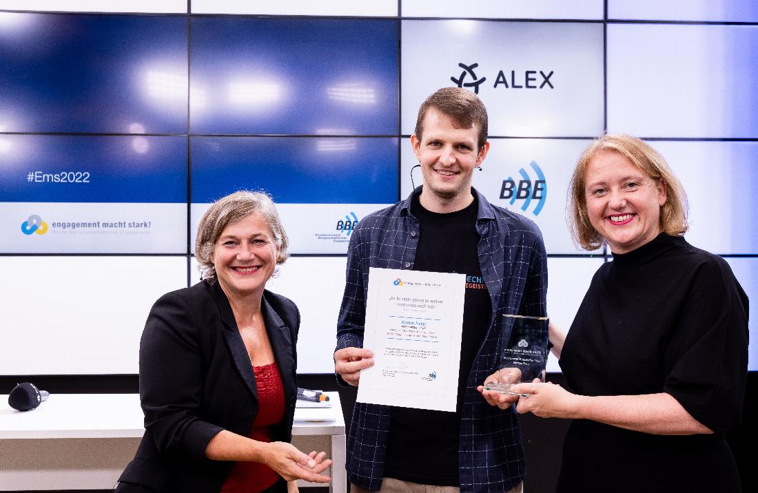 Die Auszeichnung erfolgte im Rahmen der Auftaktveranstaltung zur Woche des bürgerschaftlichen Engagements, welche durch das BBE koordiniert wird. Bundesfamilienministerin Lisa Paus betonte in ihrer Eröffnungsrede: „Die Pandemie und der Krieg in der Ukraine mit all seinen gravierenden Auswirkungen machen das Leben für viele Menschen schwieriger. Wenn wir für einander da sind und uns gegenseitig unterstützen, können wir aber auch schwere Zeiten leichter machen. Die Woche des bürgerschaftlichen Engagements zeigt, wie vielfältig Engagement in Deutschland ist und wie viele Menschen sich gerade angesichts der heutigen Schwierigkeiten und Härten für andere einsetzen. Diese Menschen helfen mit ihrem Engagement nicht nur anderen, sondern stärken damit den Zusammenhalt in unserer Gesellschaft. Dafür danke ich ihnen herzlich“.