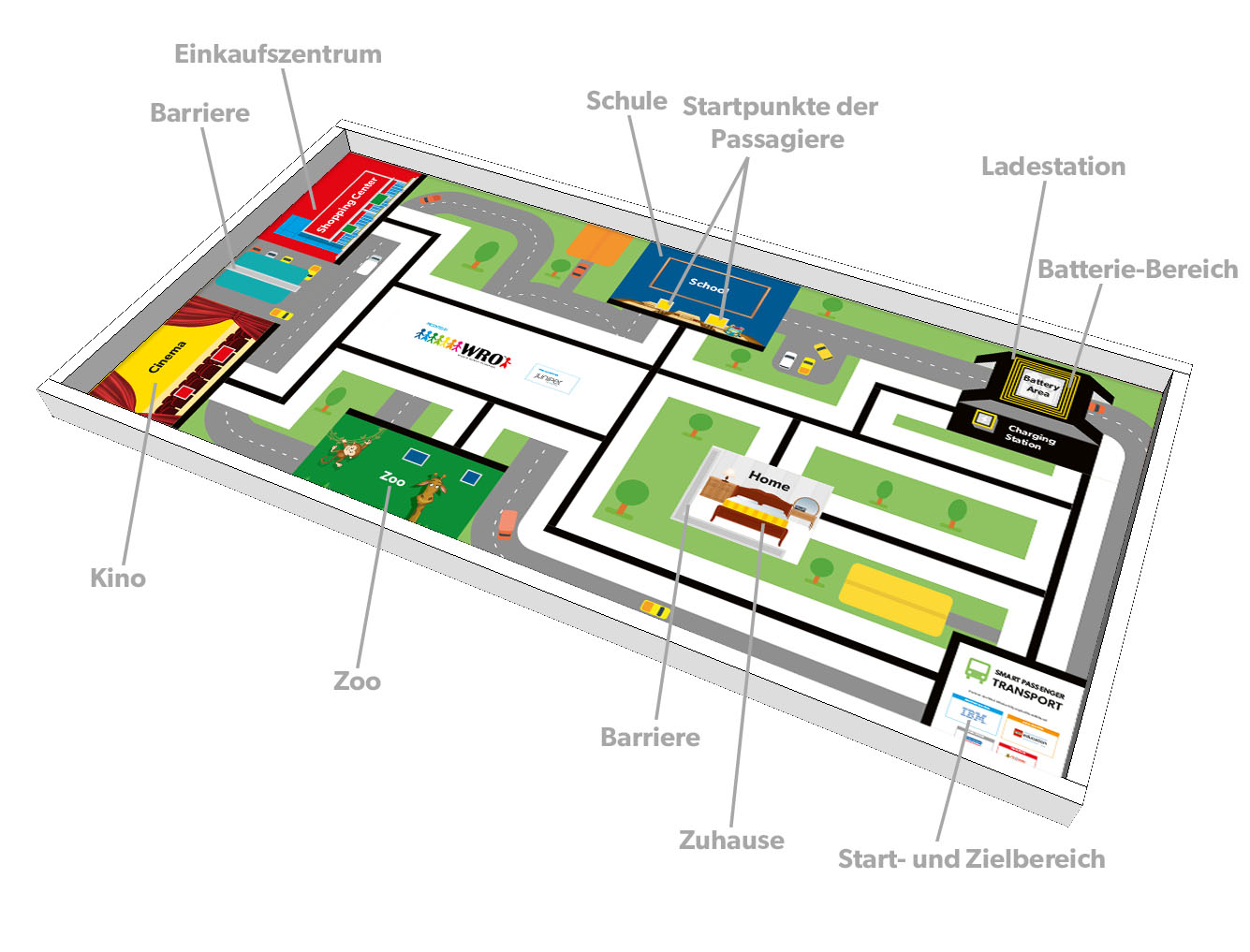 Die Aufgaben orientieren sich an dem Spielfeld der Elementary-Altersklasse. Es wird diesselbe Spielfeldmatte verwendet, aber mit einer leicht anderen Aufgabenstellung. Bitte vor dem Wettbewerb genau informieren, ob das Team im Starter-Programm oder der regulären Elementary-Altersklasse antritt. Es gibt keine zufällige Platzierung von Aufgaben, sodass die Teams den genauen Aufbau des Spielfelds immer kennen und damit üben können.