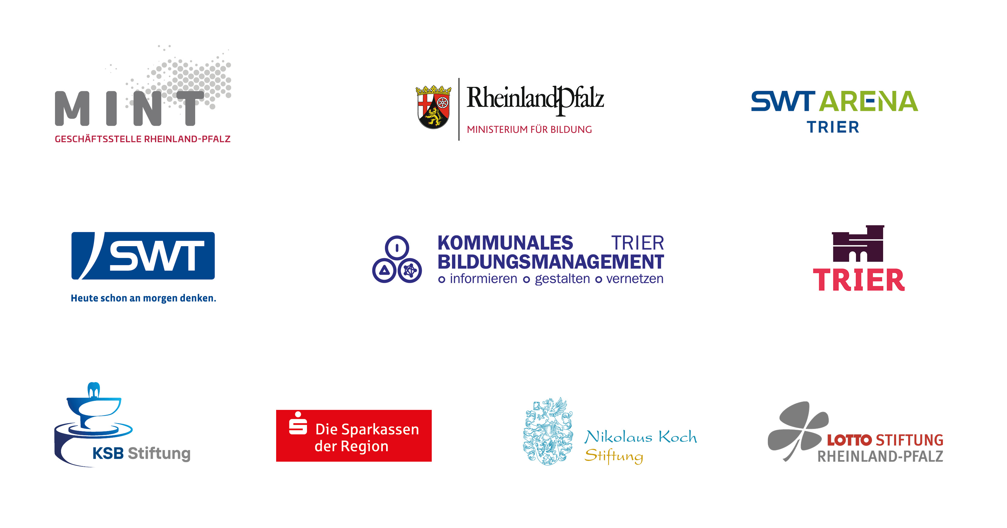 Das Finale in Trier koordinieren wir in enger Kooperation mit der Stadt Trier und den Stadtwerken Trier sowie zahlreichen regionalen Partnerinnen und Partnern, die die Veranstaltung unterstützen. Wir freuen uns auch über Unterstützung des Bildungsministeriums Rheinland-Pfalz, welches die WRO lokal bereits seit 2013 als Landeswettbewerb Robotik ausgeschrieben hat.